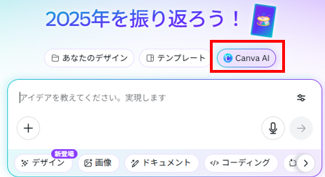 Canvaに付属する「Canva AI」を使います。